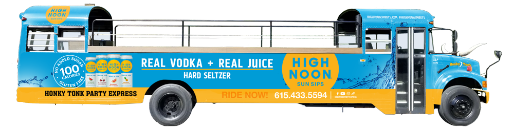 Capture the attention of your audience with creative, bold, and impactful transit ad campaigns. Honky Tonk Party Express can optimize your advertisement or help you create an ad design specifically for transit buses. Once great ad design has your audience’s attention, prompt them to act quickly with a simple call to action.